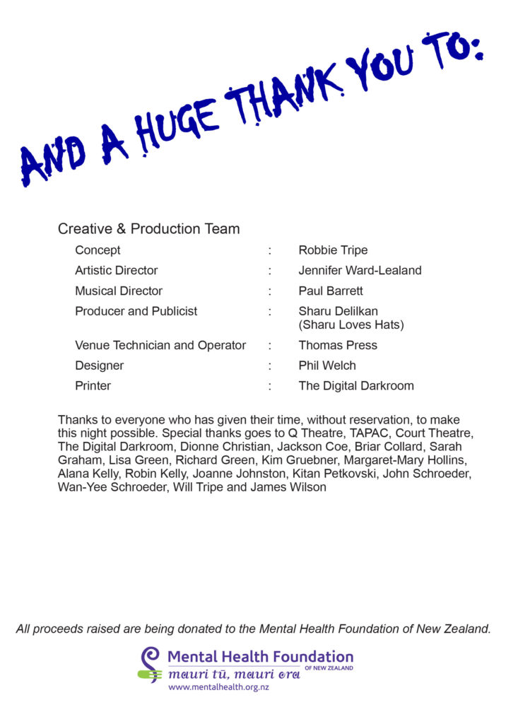 The stellar ensemble cast for Black Dog Relief comprises celebrated performers including Colleen Davis (Jesus Christ Superstar), Andrew Laing (Len Lye The Opera), Jennifer Ward-Lealand (Brel) and Rima Te Wiata (Little Shop of Horrors).